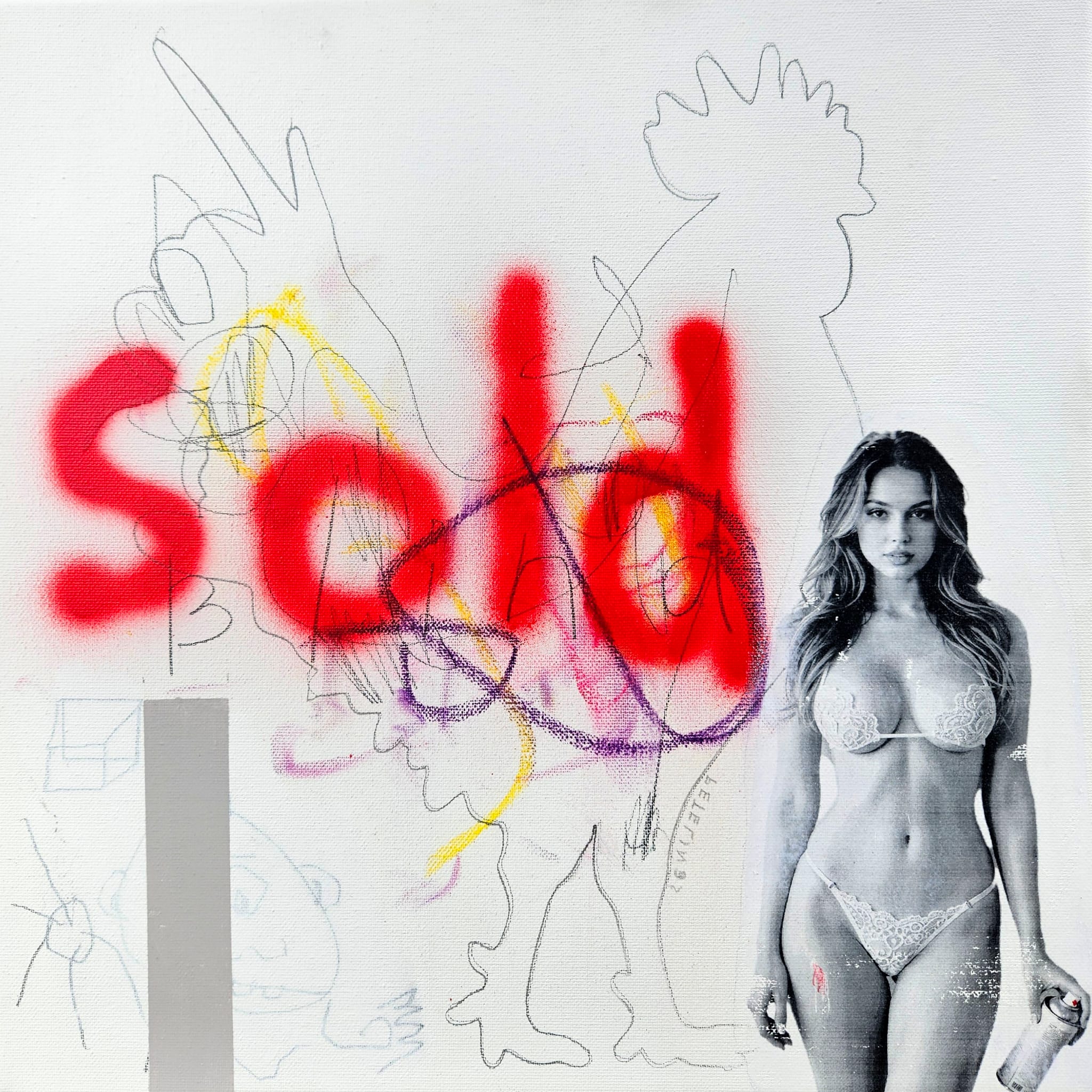 Mixed media on canvas (acrylic, oil, spray paint, pencil, graphics, print, collage, textiles)
